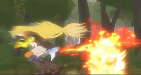 與此同時,在《RWBY》中,Nora Valkyrie使用了一種和後坐力斬類似、但運作方式完全不同的招式:將專屬武器切到戰錘形態,頂著一個硬表面開火,產生巨大的衝擊波把自己頂飛——可以是向前飛,也可以是向上飛。其他許多FPS遊戲裡也有類似的玩法,一般用油桶、手榴彈、榴彈發射器、火箭筒等會爆炸的武器或物品來實現。作為一種遊戲技巧,它通常被稱為「火箭跳」或「暴雷跳」。現在已經有《半衰期2(半條命2)》玩家利用這一招,直接在萊溫霍姆上演飛人秀→_→我 們 飛 過 萊 溫 霍 姆