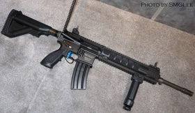 這把槍由自家的HK416進行了一定程度的修改得來,和亞伽裡、伊吹、雪乃的步槍均為同一系列,只是三把槍在外觀上和部分內構配件上稍有不同,因此,這三把槍的數據也幾乎都是大差不差。