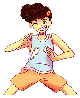 在碰見凱和Sunny以後,安吉爾給兩個人畫了生動形象的簡筆畫。