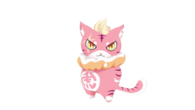 虎爺,空買的貓形玩偶 肚子上卻寫個虎字怕不是買到假貨,頭上有著白色的頭髮鬃毛挑染黃色 左耳有個缺口,脖子上帶著甜甜圈 身上有著條紋怕不是斑紋虎 身後有條拉鍊
